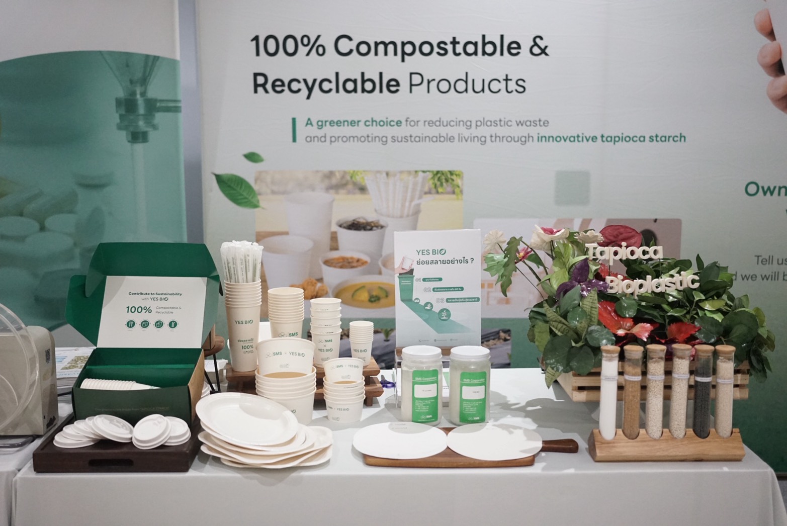 Meanwhile, YES BIO showcases its compostable food packaging solutions, highlighting the brand’s commitment to environmentally responsible alternatives for food and beverage sectors.