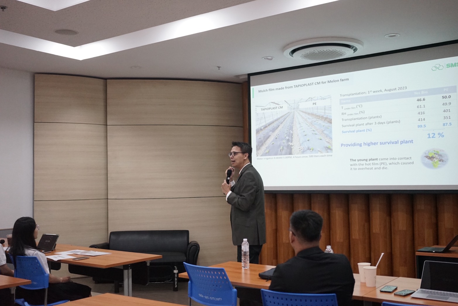 SMS is represented by Dr. Werawat Lertwanawatana, Chief Executive Officer; Dr. Waesarat Soontornchaiboon, Product Innovation Manager; and Mr. Aukkrapon Dangsopon, Industrial Innovation Manager.