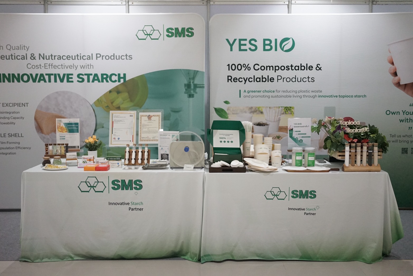 At the event, SMS presented its pharmaceutical- and nutraceutical-grade modified tapioca starch solutions, including the DAVAMED™ series–certified under EXCiPACT and TAPIOPARM™ series. These products are developed to meet stringent pharmaceutical standards and are designed to support high-performance drug formulation applications.
